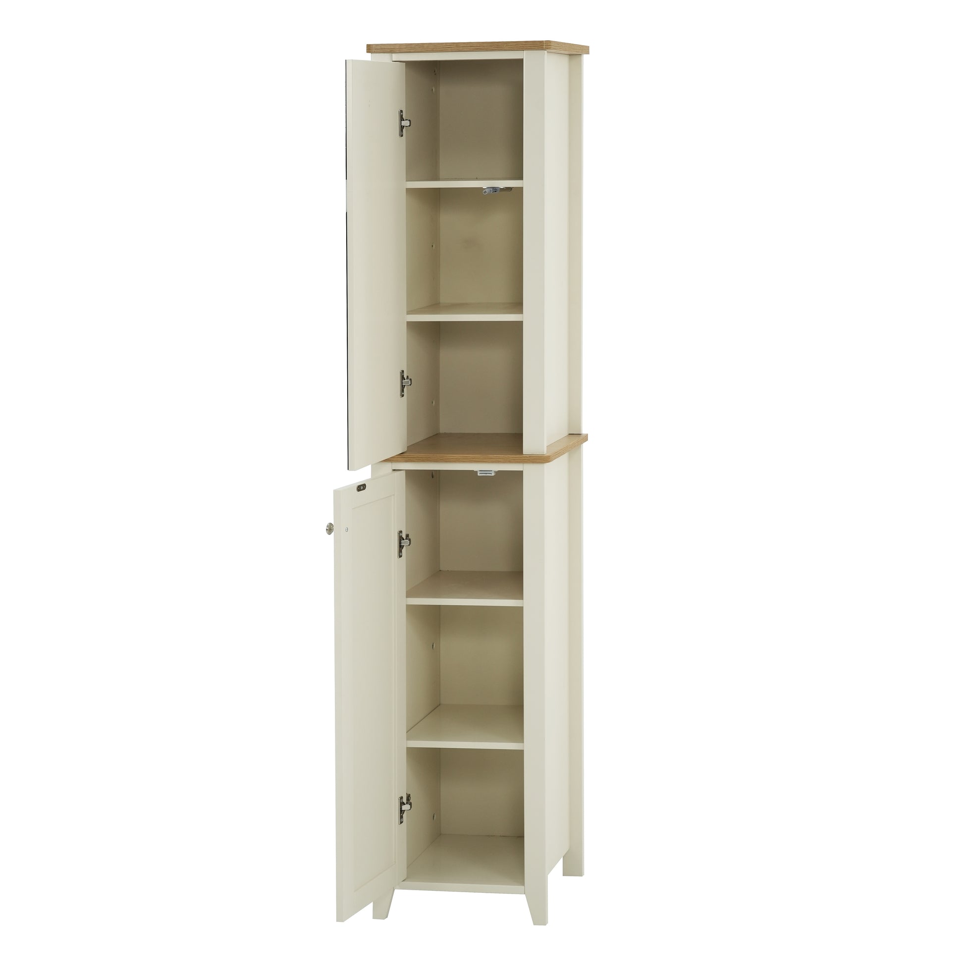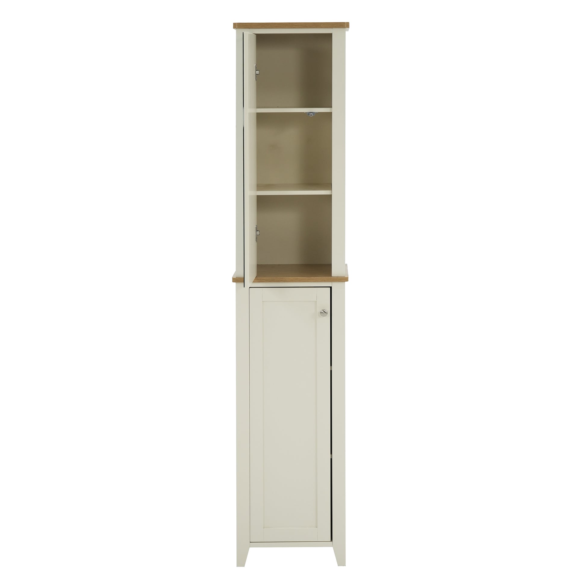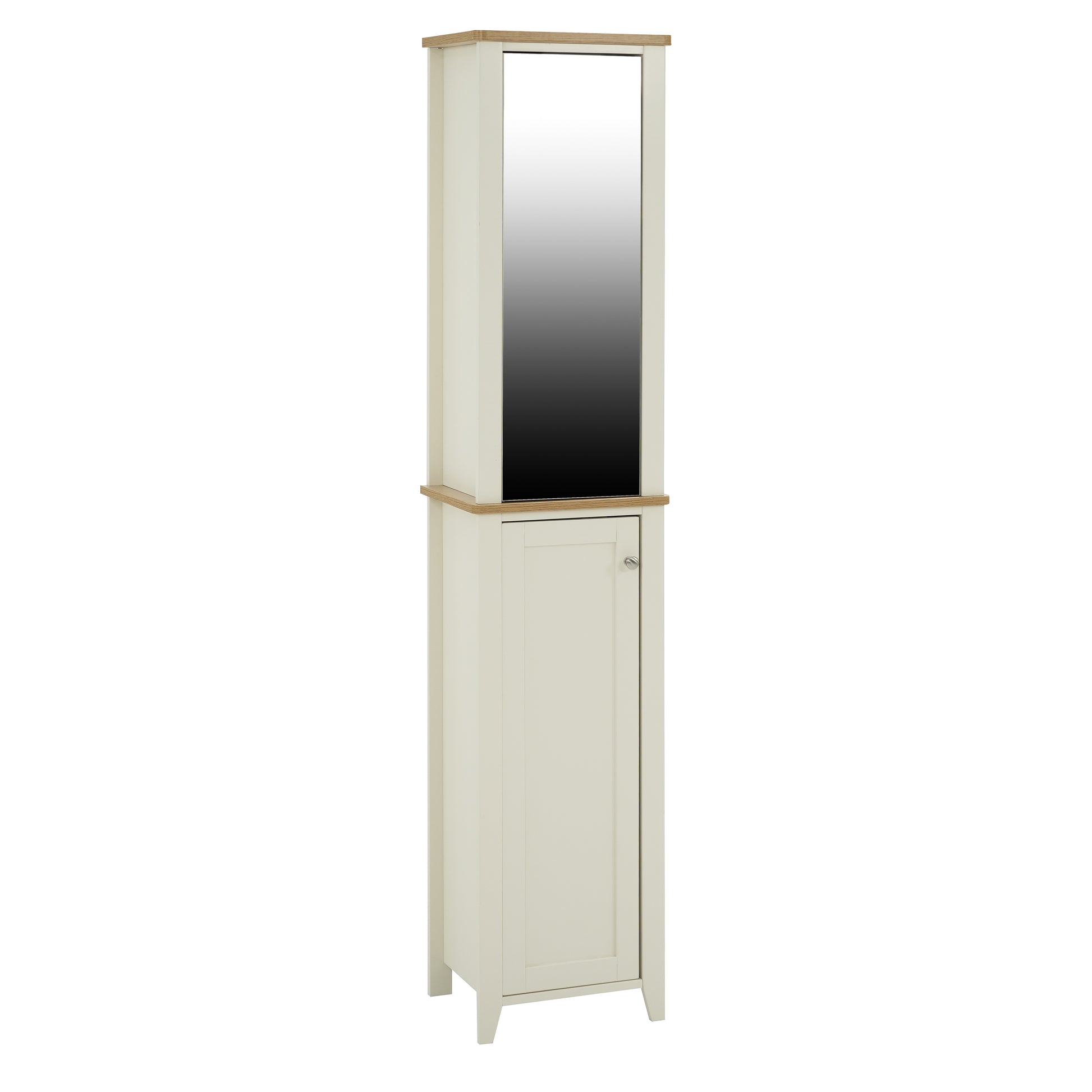 Part of our traditional two-tone country style, the Olivia bathroom tallboy provides hidden shelves and storage with a mirror facility. This sturdy, quality tallboy comes in ivory with an oak effect top and base.