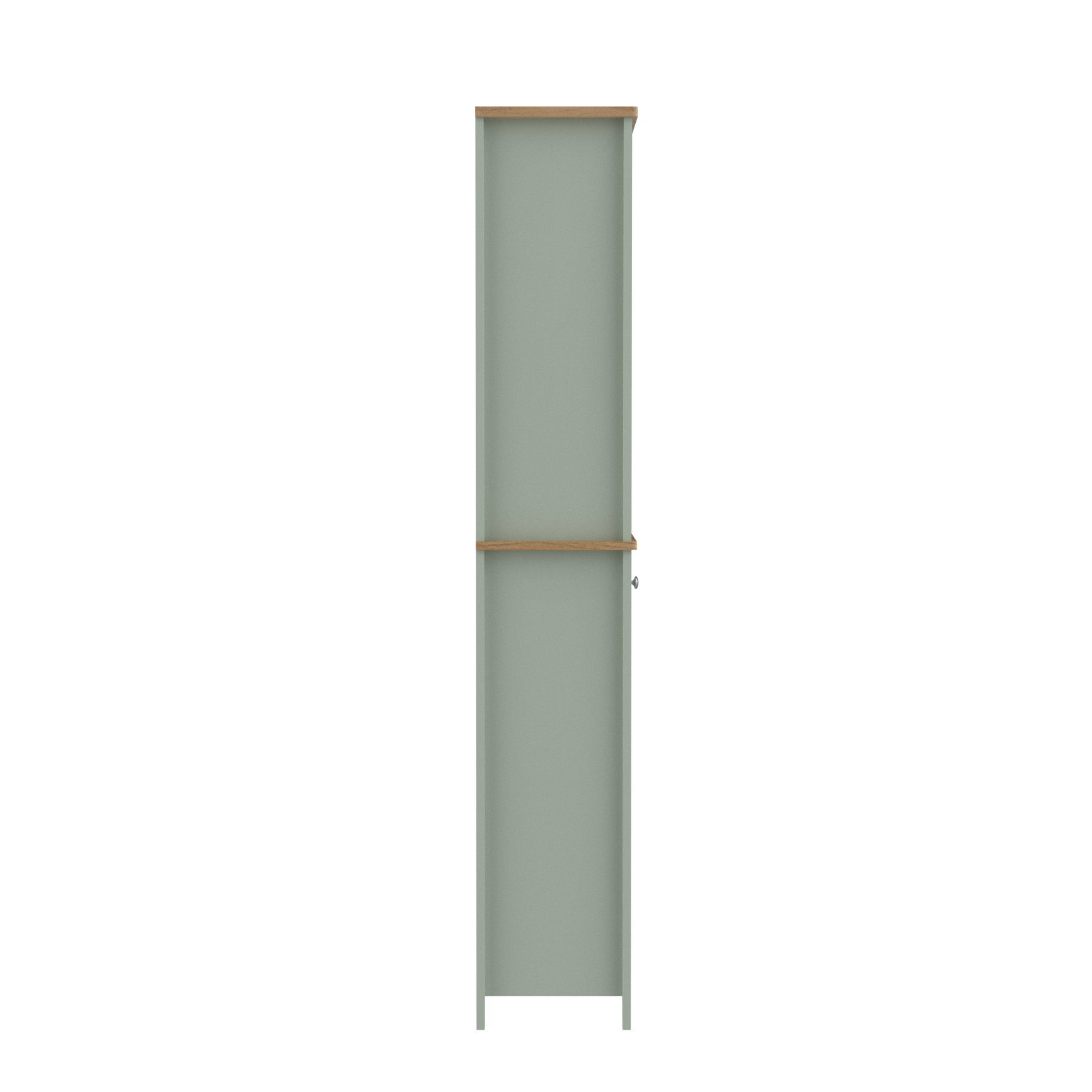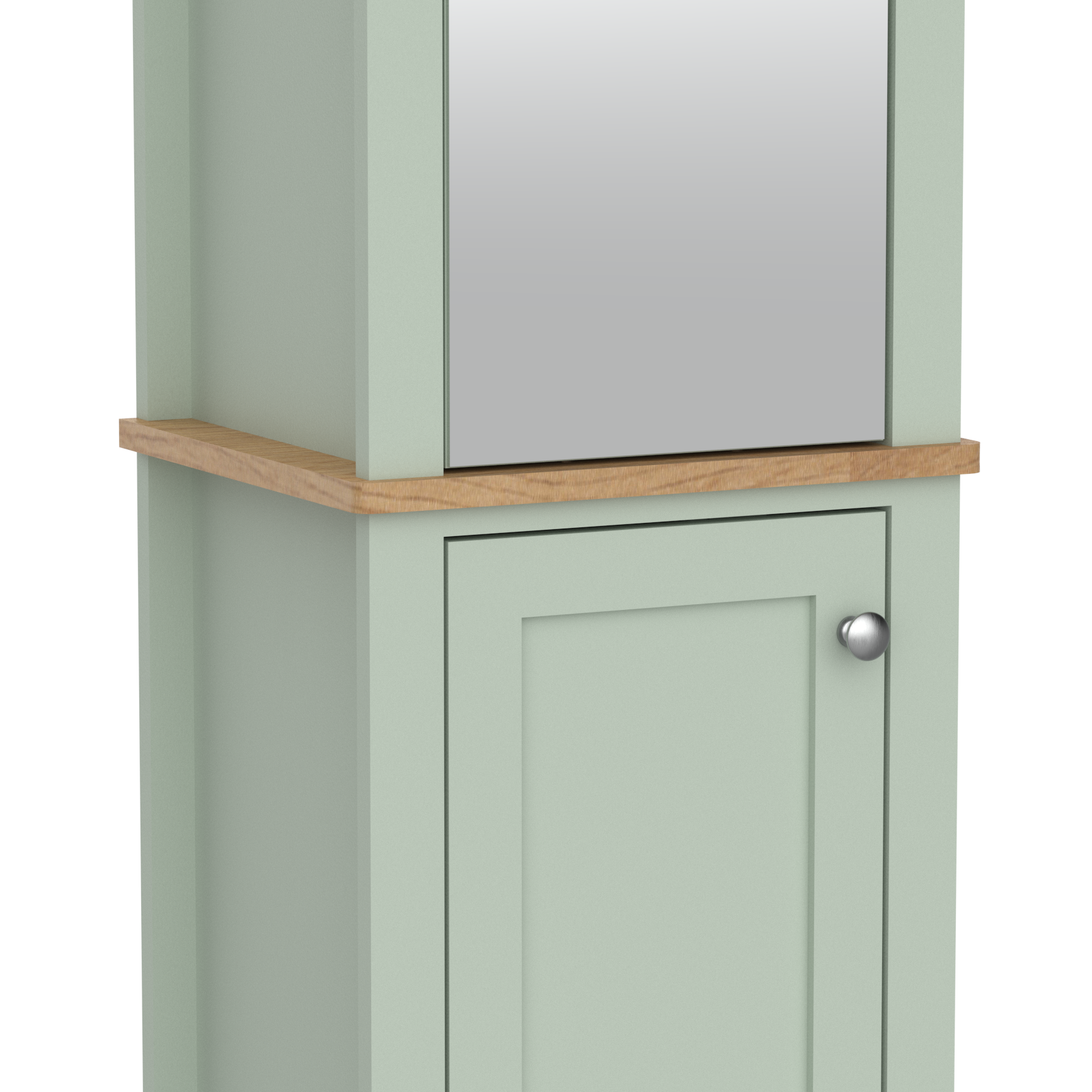 Part of our traditional two-tone country style, the Olivia bathroom tallboy provides hidden shelves and storage with a mirror facility. This sturdy, quality tallboy comes in seafoam green with an oak effect top and base.