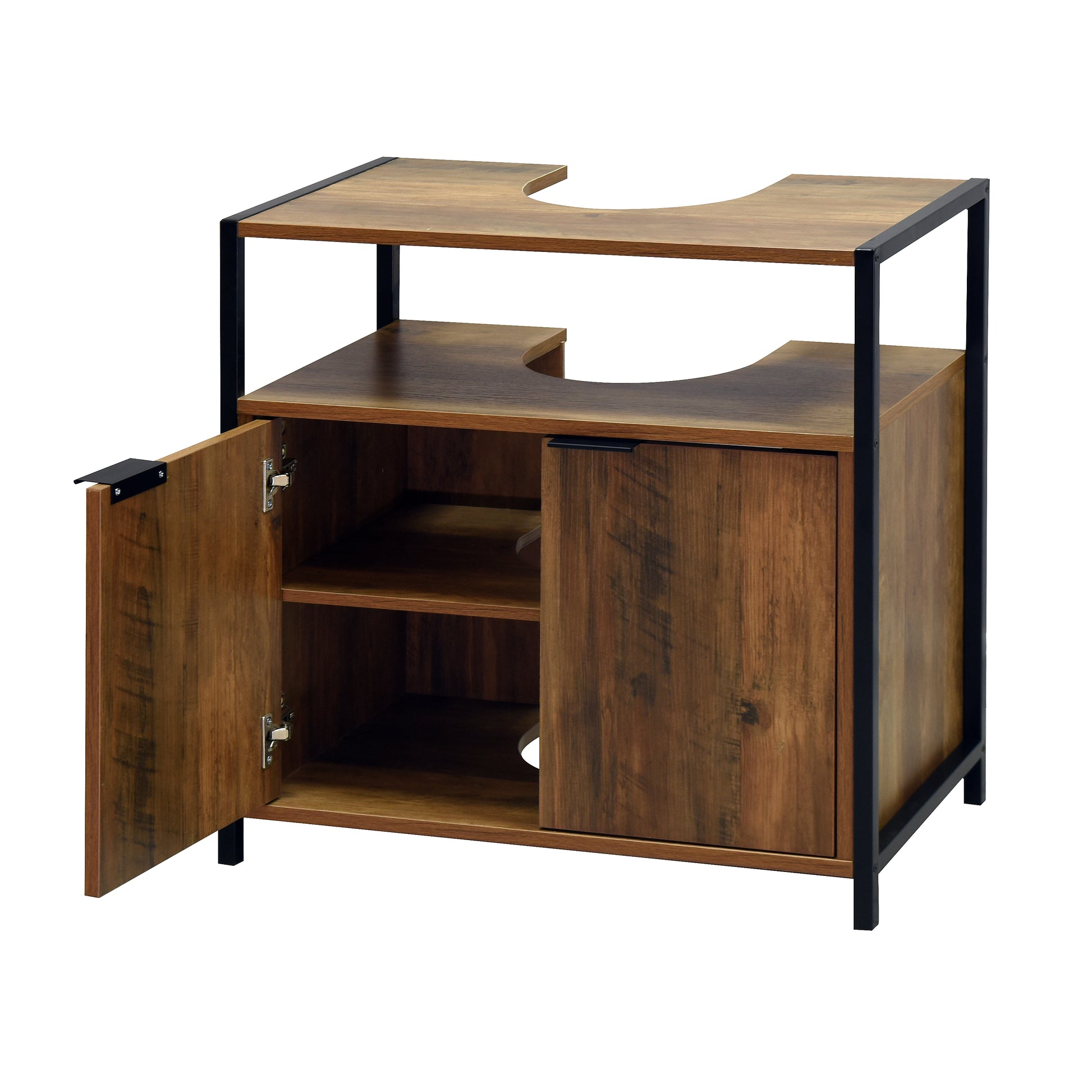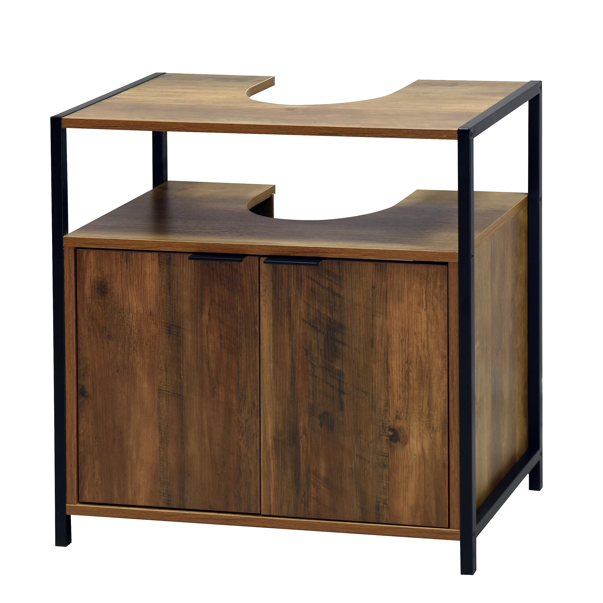 The Rivet is our industrial/loft living bathroom range. This under basin unit provides both open and hidden storage in a normally unused space.